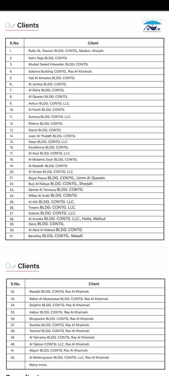 We have worked in entire emirates, Below is the list of our clients we've worked for
